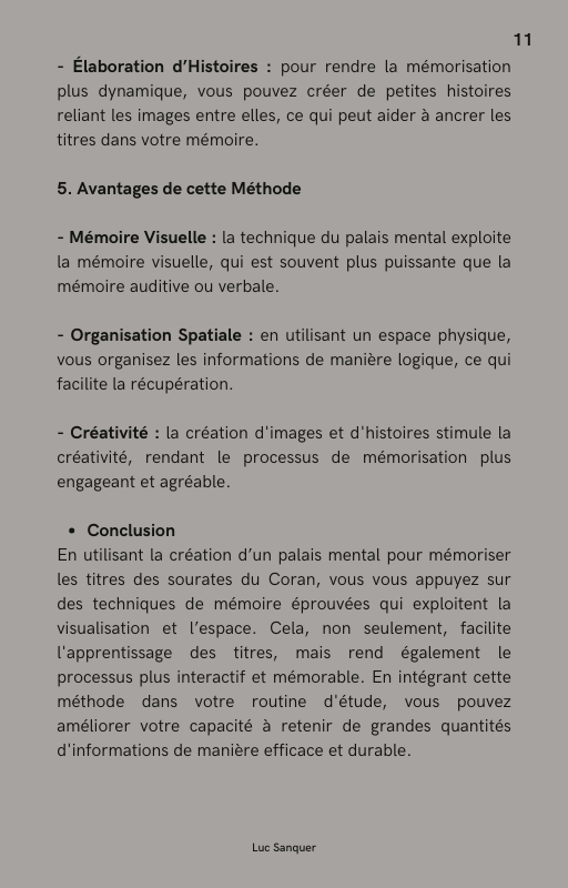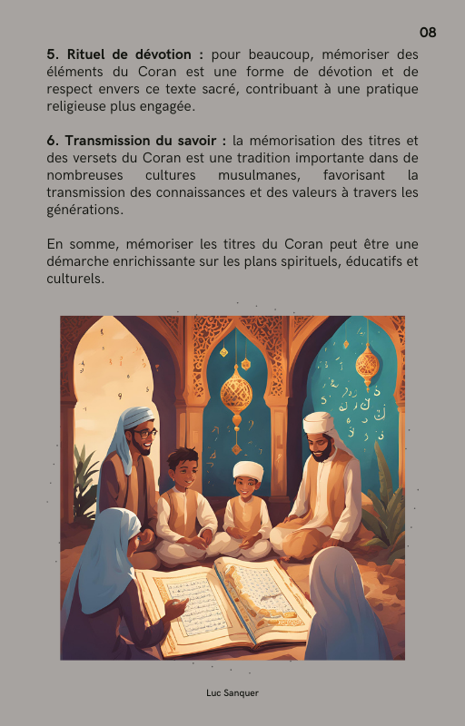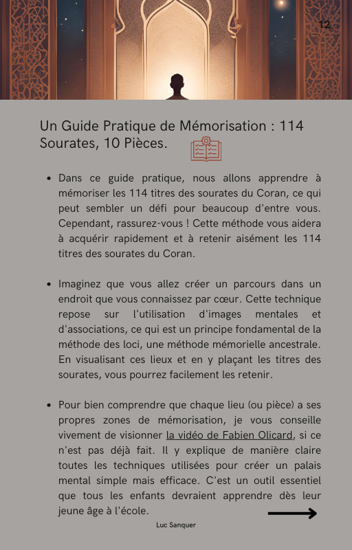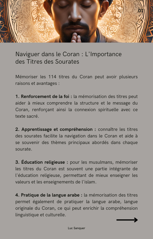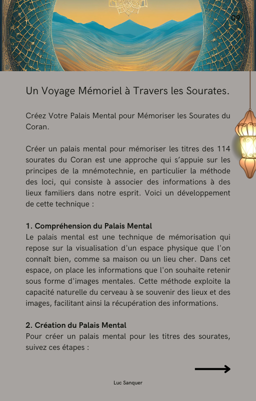 - Explications : en associant des chiffres à des sourates et en créant des phrases mnémotechniques, vous facilitez la mémorisation tout en rendant l’exercice plus amusant.